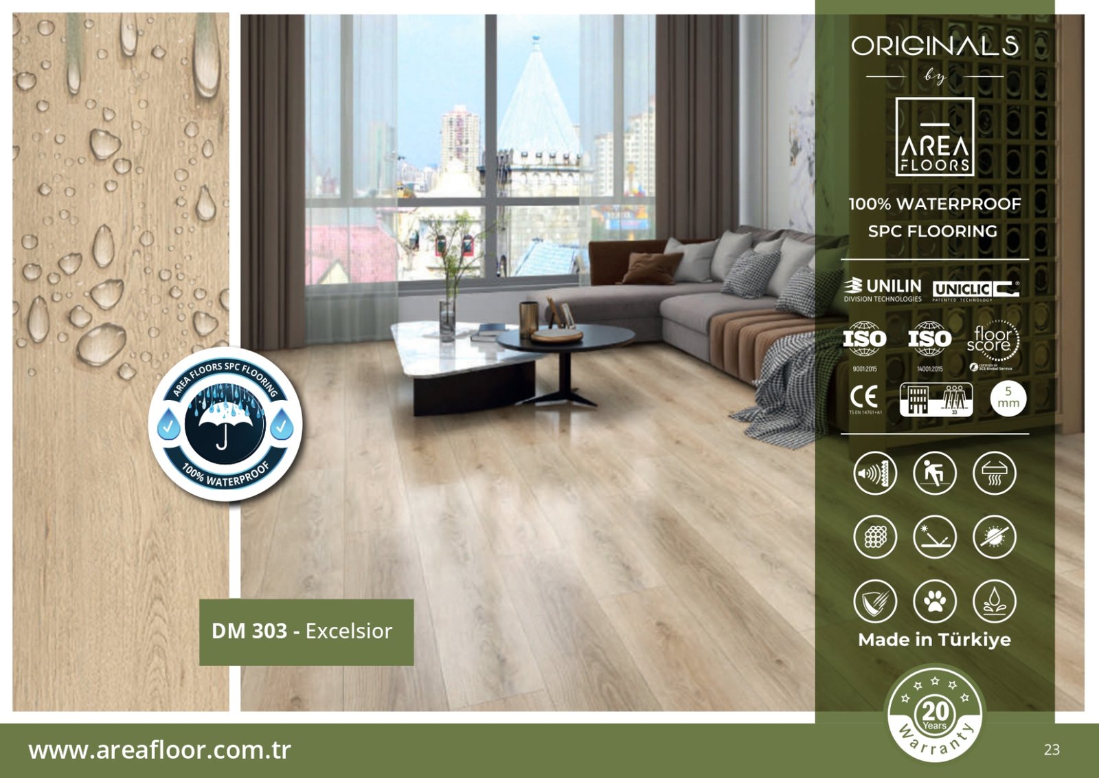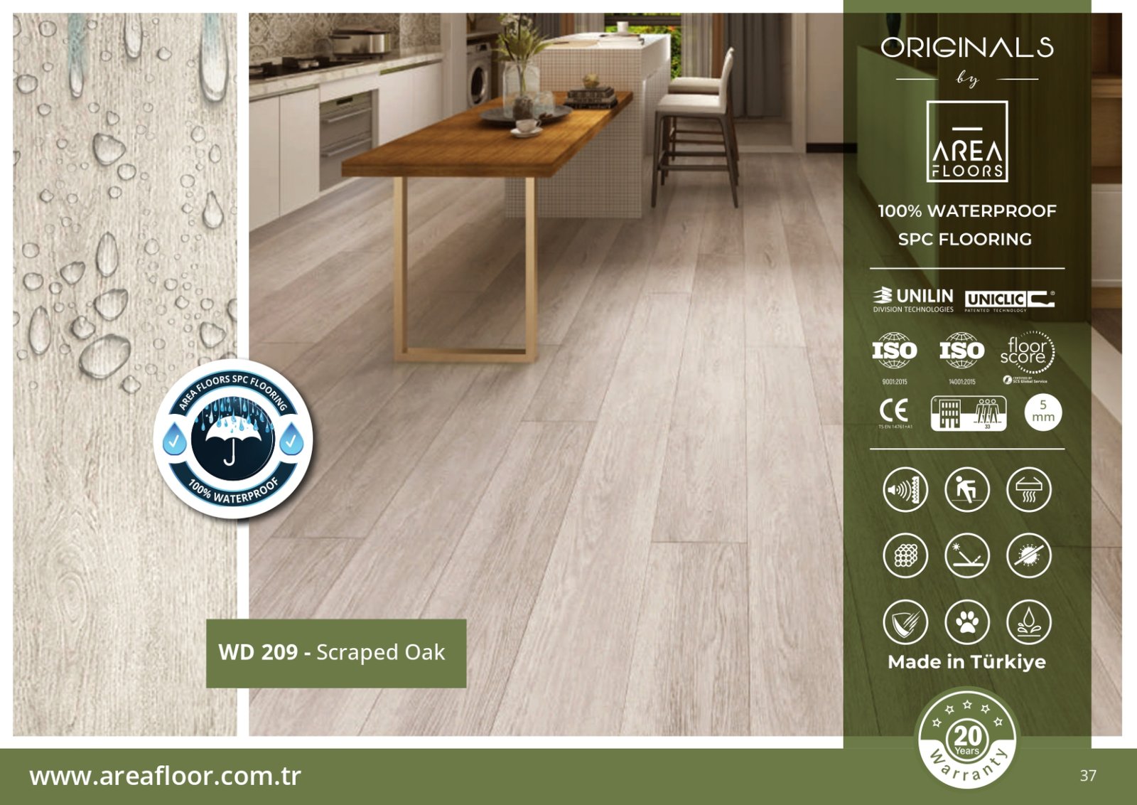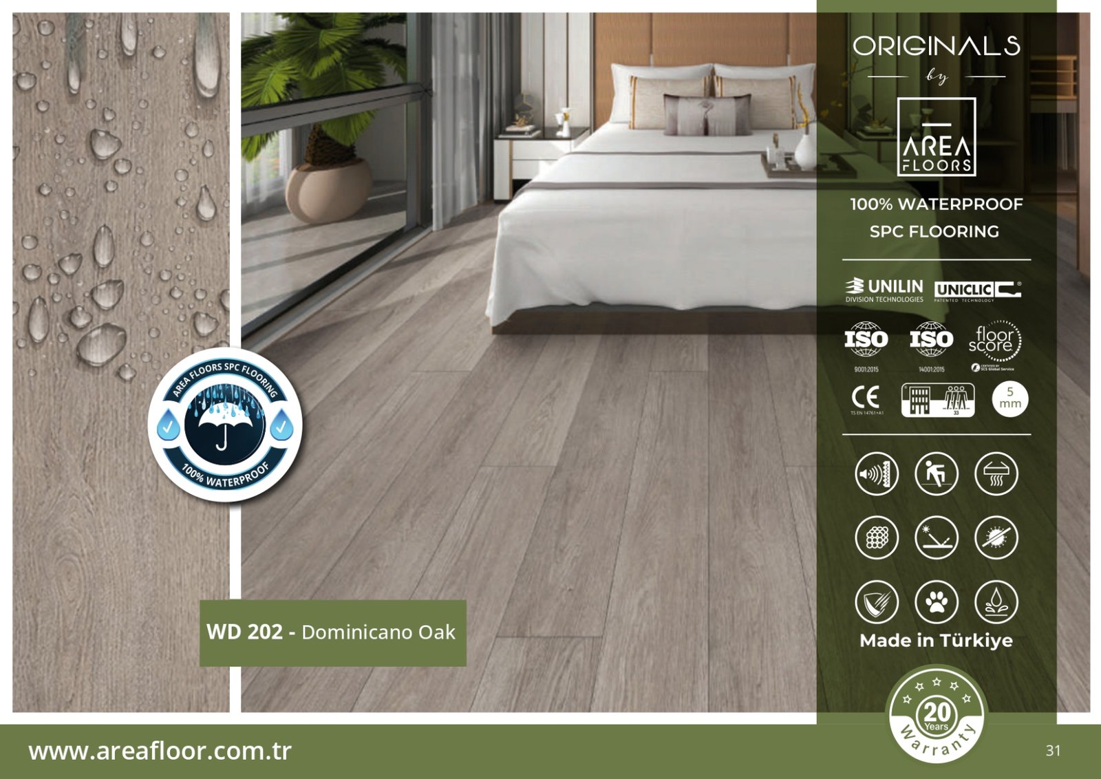 بفضل طبقاتها المقاومة للماء بنسبة 100%، تُعتبر أرضيات SPC ضد الماء الخيار الأمثل لكل من يبحث عن باركيه بلاستيك ضد الماء بلمسة خشبية فاخرة وبتكلفة مناسبة. مع KEMET FLOORING، يمكنك الجمع بين الجمال والقوة في آنٍ واحد.