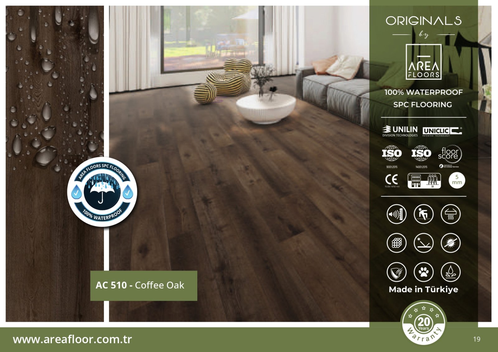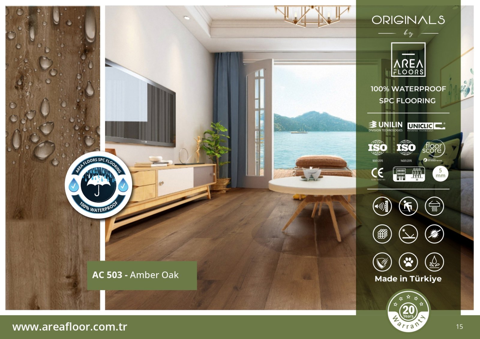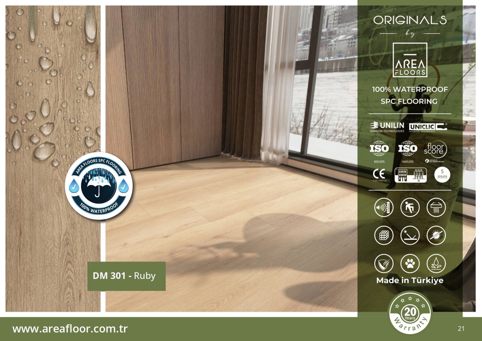 بفضل طبقاتها المقاومة للماء بنسبة 100%، تُعتبر أرضيات SPC ضد الماء الخيار الأمثل لكل من يبحث عن باركيه بلاستيك ضد الماء بلمسة خشبية فاخرة وبتكلفة مناسبة. مع KEMET FLOORING، يمكنك الجمع بين الجمال والقوة في آنٍ واحد.